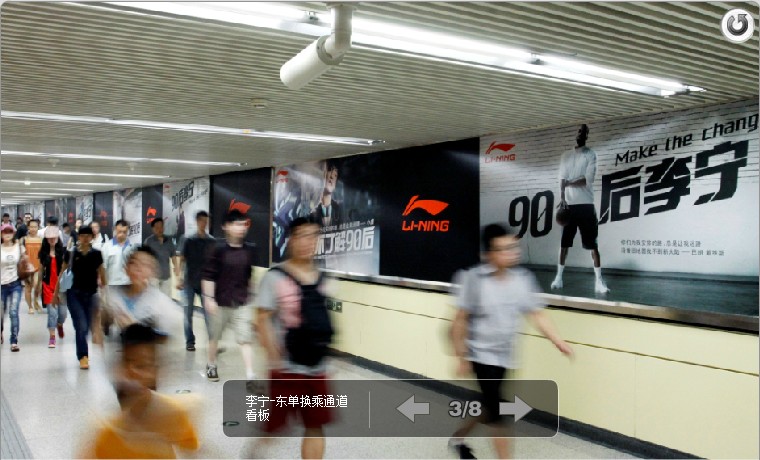 位置:1号线-西单站-站厅 优势:西单站是北京地铁最优质的站点之一,周围高档百货林立,是休闲购物的天堂,站客流量大,乘客具有年轻化、高消费能力的显著特征。超大墙贴为品牌提供了超大创意空间。同时媒体靠近销售终端,也是新品上市最佳的轰动型与爆破型推广媒体。