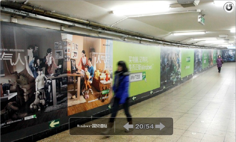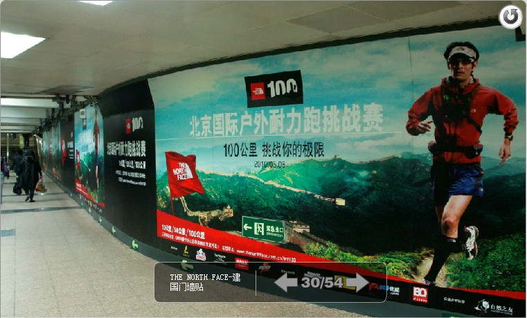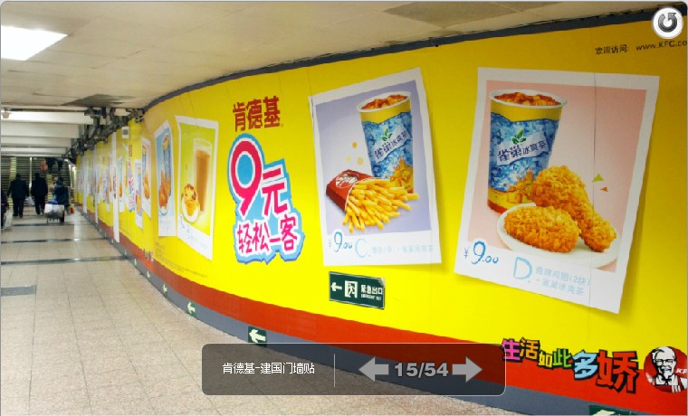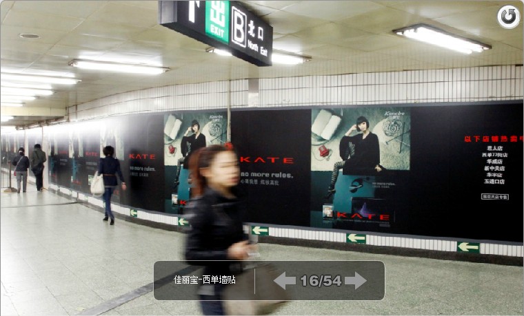 位置:1号线-西单站-站厅 优势:西单站是北京地铁最优质的站点之一,周围高档百货林立,是休闲购物的天堂,站客流量大,乘客具有年轻化、高消费能力的显著特征。超大墙贴为品牌提供了超大创意空间。同时媒体靠近销售终端,也是新品上市最佳的轰动型与爆破型推广媒体。
